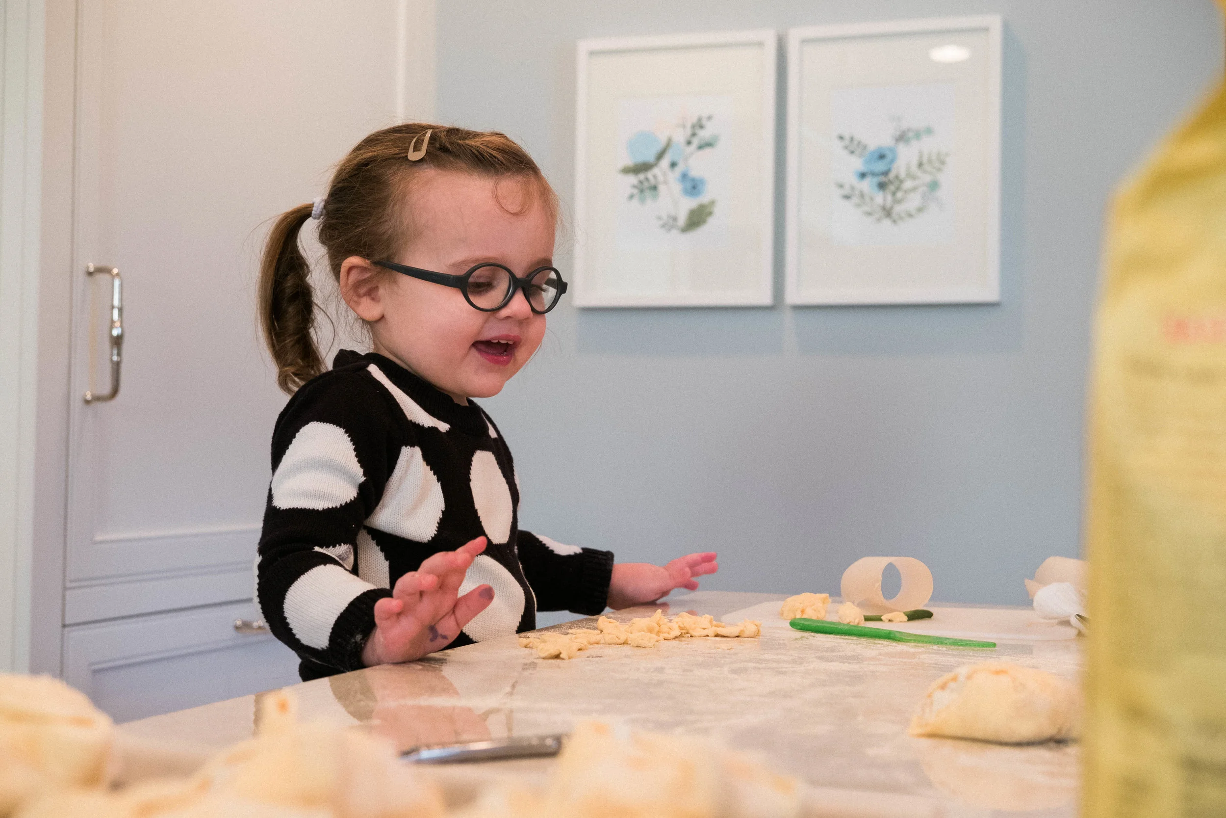 Lydia has been a big helper in the kitchen since the move. She enjoys baking with Momma and likes to sit on the stools. She loved being in the kitchen in our last home as well, but now she has enough room to get involved without us moving things around.